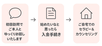 訪問によるアウトリーチ支援/じっくり対話・信頼関係づくり | 60分 | 5,000円/回 |